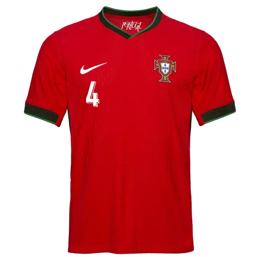 Danxen Hombre Camiseta Portugal Ruben Dias #4 Rojo 1ª Equipación 24-26 La Camisa
