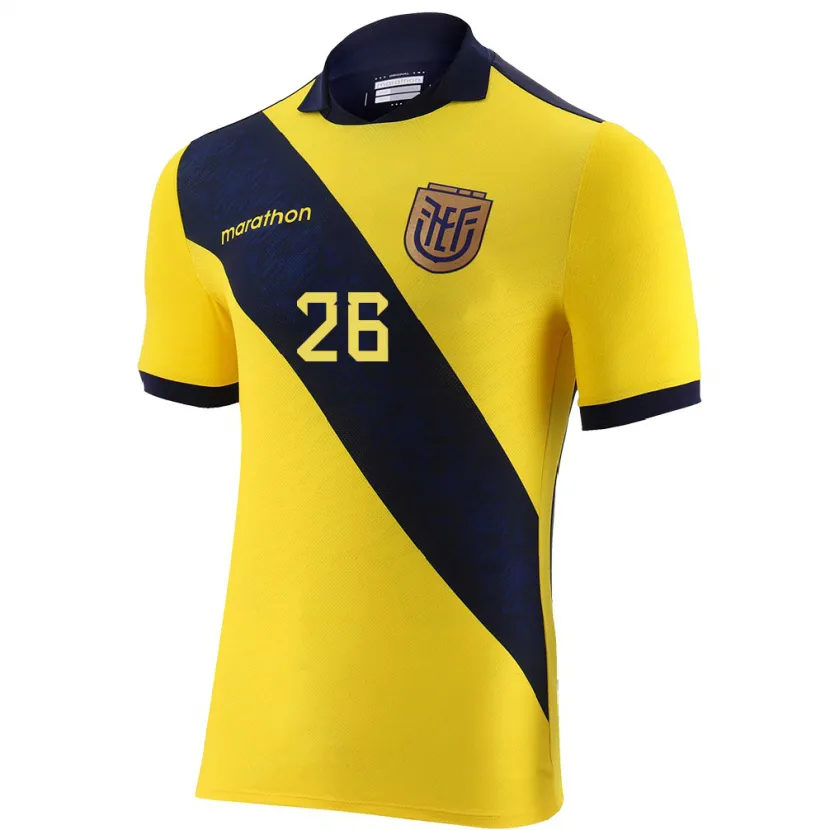 Danxen Mujer Camiseta Ecuador Anthony Valencia #26 Amarillo 1ª Equipación 24-26 La Camisa