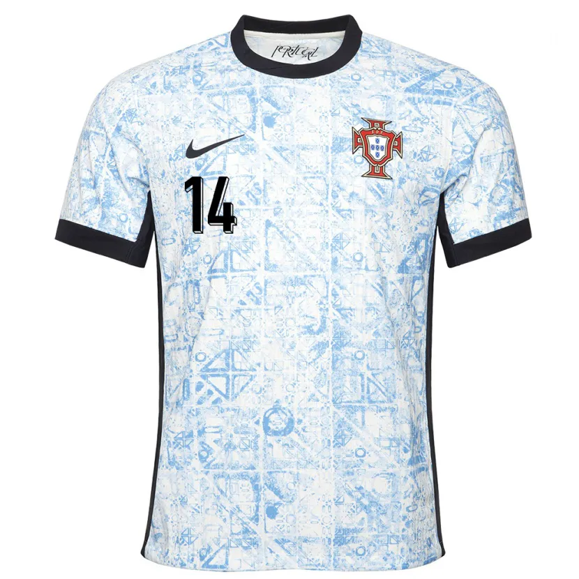 Danxen Mujer Camiseta Portugal William Carvalho #14 Crema Azul 2ª Equipación 24-26 La Camisa