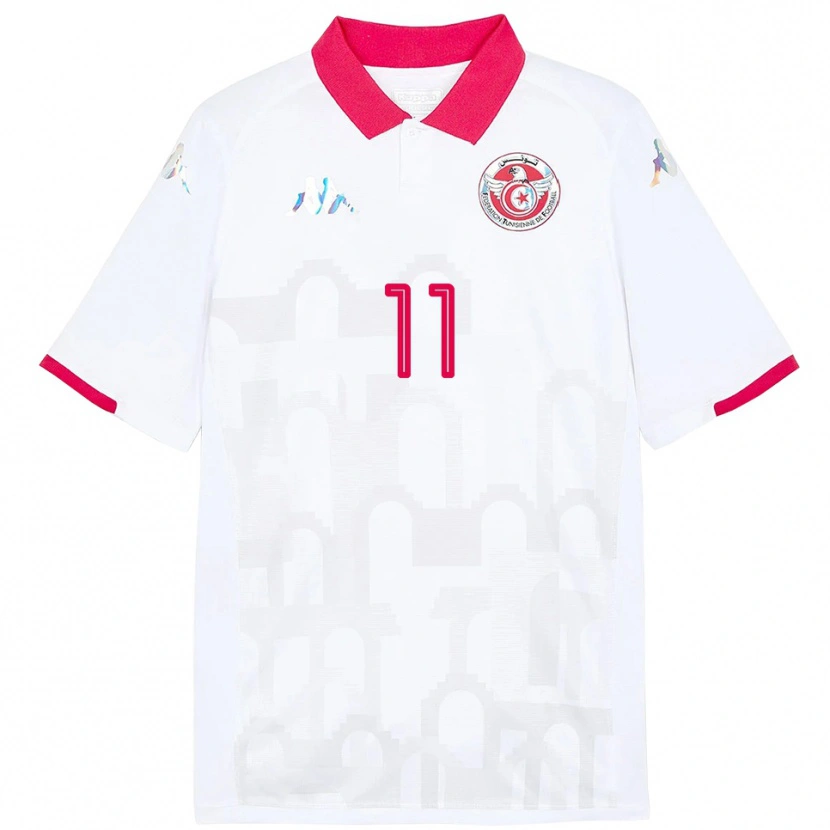 Danxen Mujer Camiseta Túnez Youssef Becha #11 Blanco 2ª Equipación 24-26 La Camisa