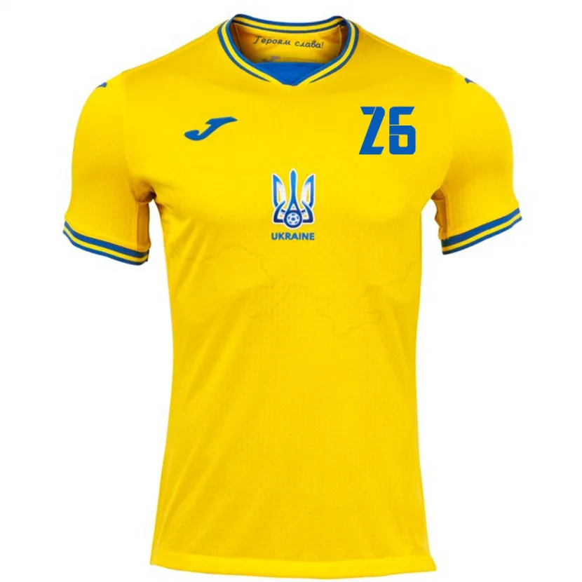 Danxen Mujer Camiseta Ucrania Bogdan Mykhaylichenko #26 Amarillo 1ª Equipación 24-26 La Camisa