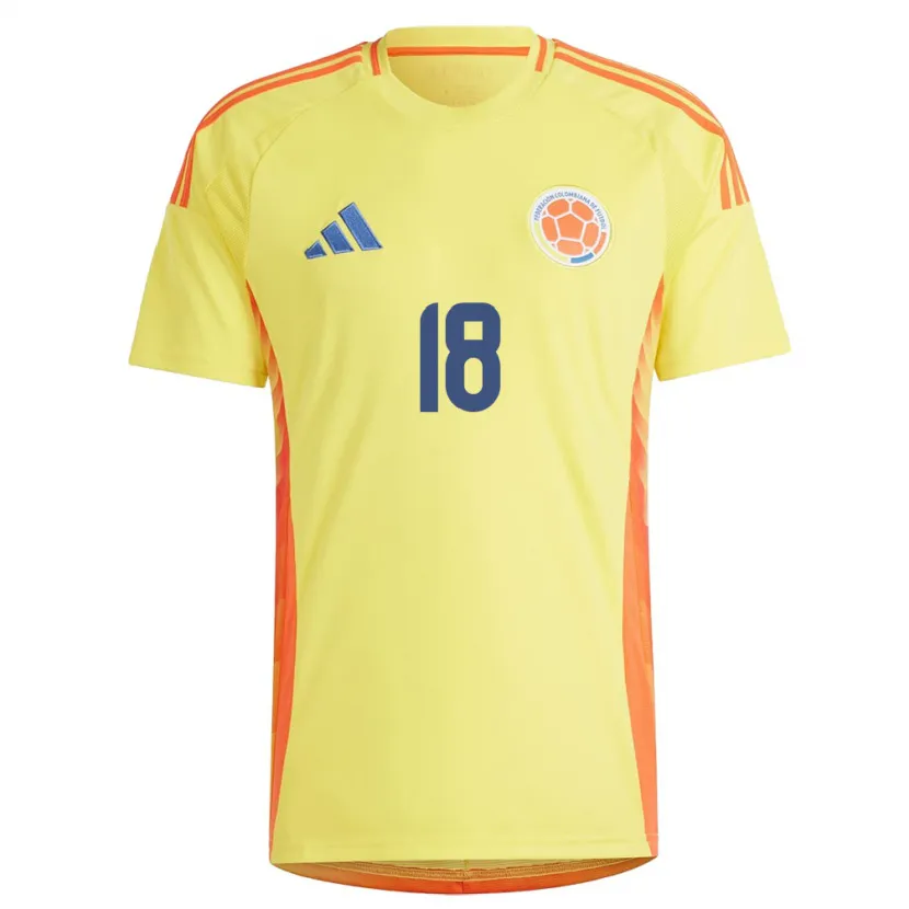 Danxen Niño Camiseta Colombia Jhon Echavez #18 Amarillo 1ª Equipación 24-26 La Camisa