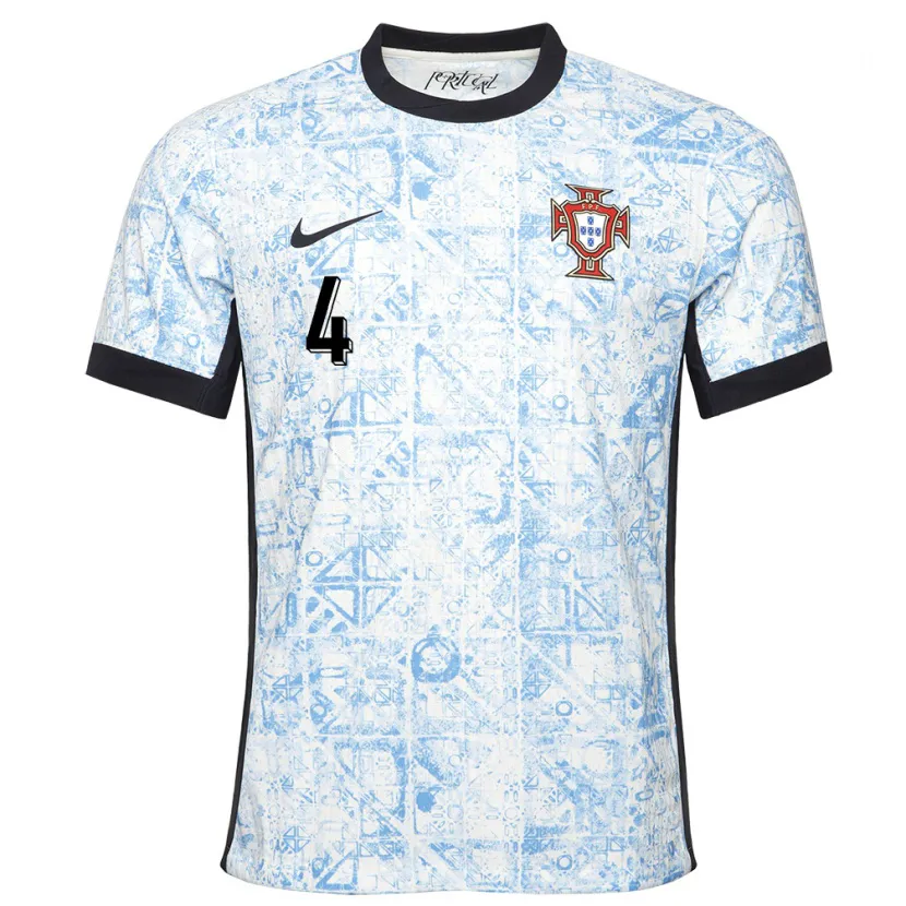 Danxen Niño Camiseta Portugal Gonçalo Oliveira #4 Crema Azul 2ª Equipación 24-26 La Camisa