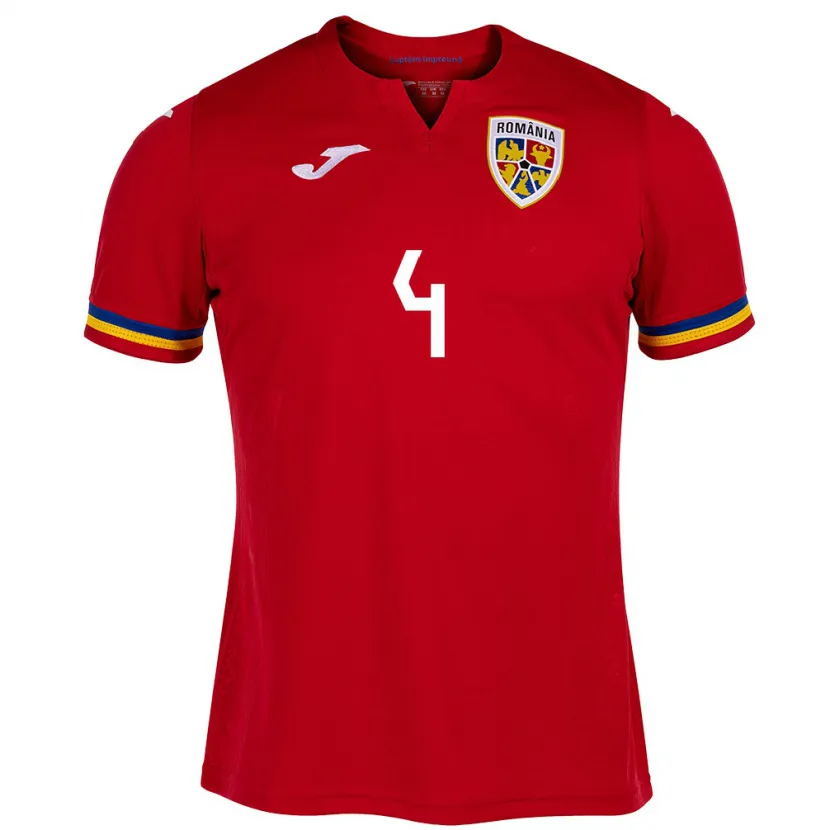 Danxen Niño Camiseta Rumania Adrian Rus #4 Rojo 2ª Equipación 24-26 La Camisa