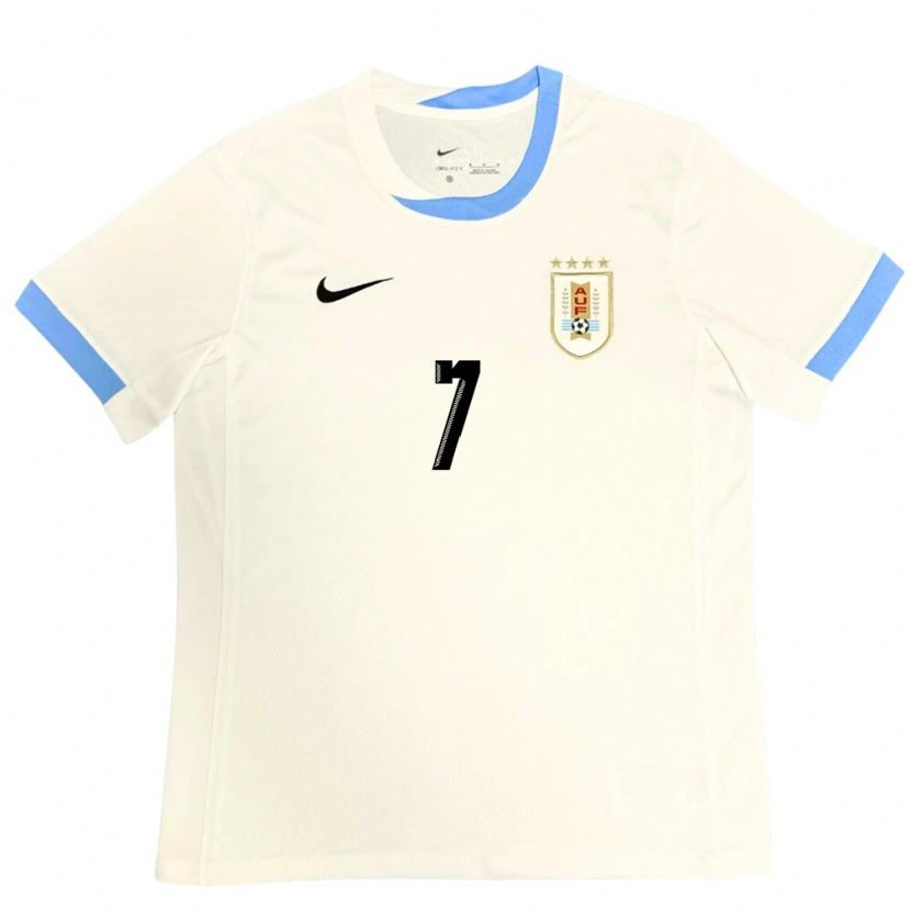 Danxen Niño Camiseta Uruguay Nahuel López #7 Blanco Azul 2ª Equipación 24-26 La Camisa